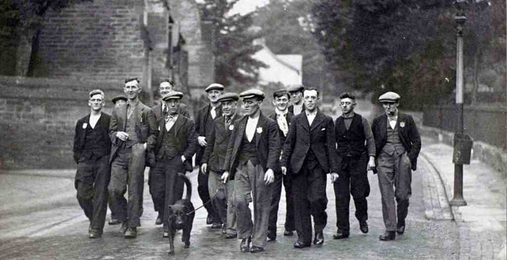 “One thing that will strike the observer in the wintertime in the Distressed Areas is the number of men who even on a cold day are to be seen without an overcoat. Take a look at a funeral procession in South Wales these days. The custom is for the relations and friends to walk behind the hearse to the cemetery, and the miners, who in times of good trade always had a preference for smart blue serge suits, would turn out in their best apparel and bowler hat, and present an exceedingly respectable appearance. But not so today. A funeral procession in the Rhondda Valley bears the marks of extreme poverty. The few serge suits which are seen can be marked out by their cut as pre war or immediate post war, because for years no new clothes have been bought.